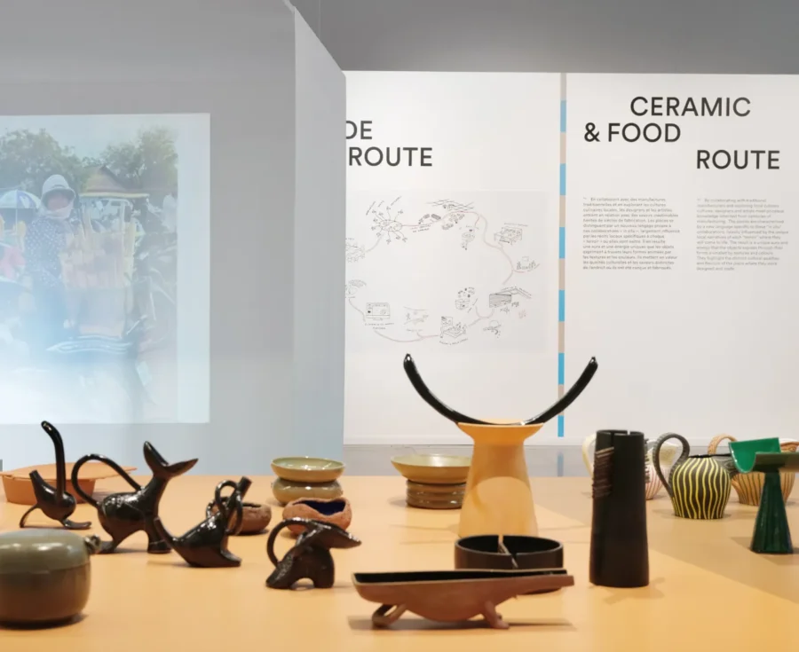 Five years after the Ceramic & Food Route began, International Design Expeditions shared its journey with the public. The Cité du design hosted a large exhibition with about 150 objects created through meetings, workshops, and performances in five countries: Italy, Cambodia, Sweden, Poland, and France.